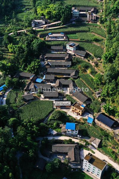 图片说明:2022年7月26日,重庆市黔江区阿蓬江镇青杠村小寨民居错落有致。
