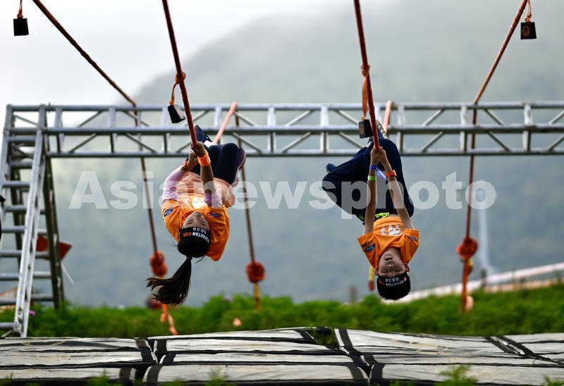 7月31日,参赛小选手们在烈日下征服各种障碍。