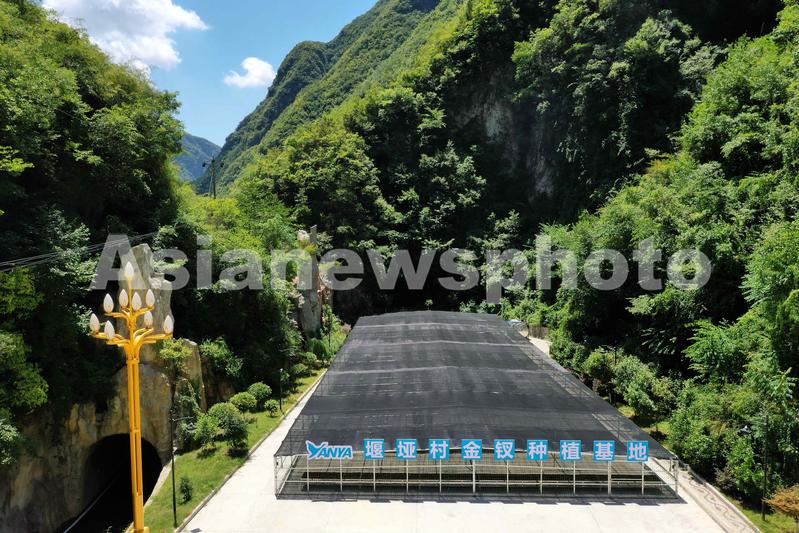 2022年7月29日拍摄的湖北省襄阳市保康县马桥镇堰垭村中药材金钗石斛种植基地(无人机照片)。
