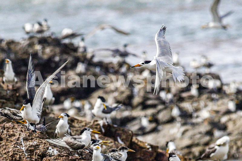 2022年7月30日,各类海鸟浩翔在浙江省舟山市定海五峙山列岛。