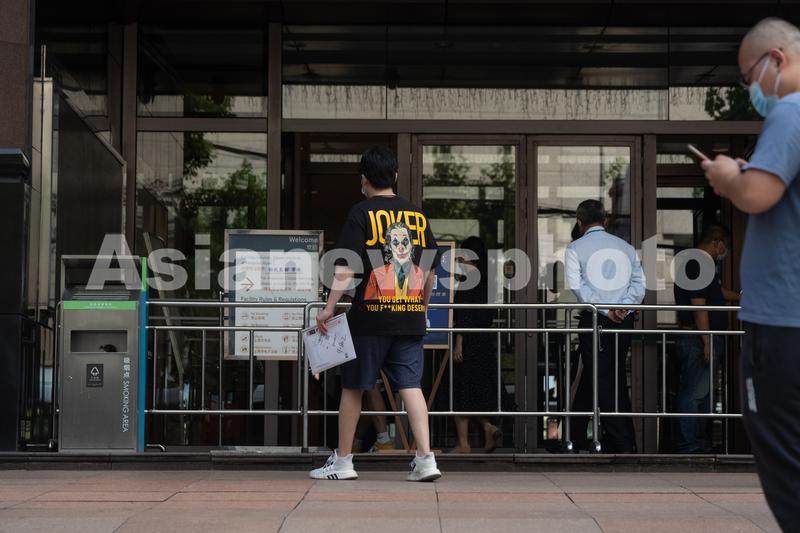 2022年8月1日,美国驻上海总领事馆恢复非移民签证服务,图为人们在美国驻上海总领事馆签证处外排队。