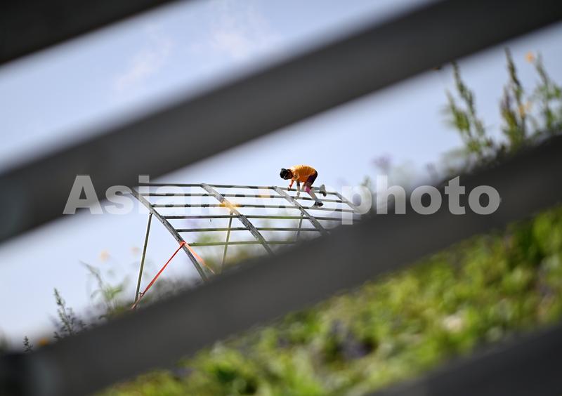 7月31日,参赛小选手们在烈日下征服各种障碍。