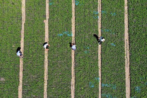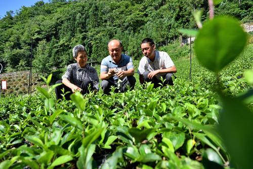 2022年7月29日,村民在湖北省襄阳市保康县马桥镇堰垭村中药材重楼种植基地进行田间除草。