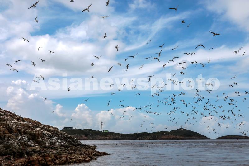 2022年7月30日,各类海鸟浩翔在浙江省舟山市定海五峙山列岛。