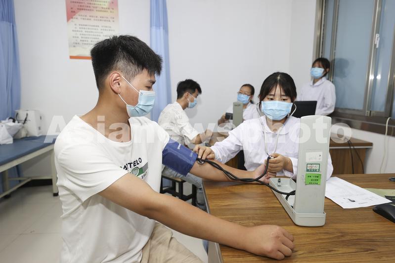 图片说明:2022年8月2日,江苏省连云港市赣榆区应征青年在征兵体检站接受身体检查。