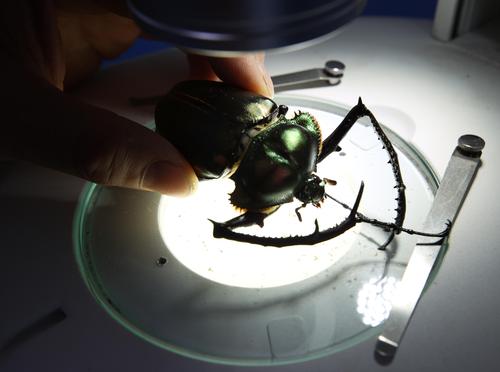 阳彩臂金龟(学名:Cheirotonus jansoni)隶属鞘翅目、金龟总科臂金龟科,是我国特有物种。(8月1日 摄)