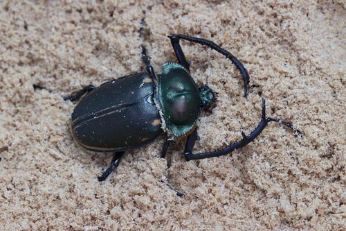 阳彩臂金龟(学名:Cheirotonus jansoni)隶属鞘翅目、金龟总科臂金龟科,是我国特有物种。阳彩臂金龟喜欢栖息于热带、亚热带的常绿阔叶林或常绿落叶阔叶混交林林中,成虫需要在开阔的空间林地进行活动,幼虫只有在大型朽木中才能生存,通常要经过2年或更长的时间才能完成发育。
