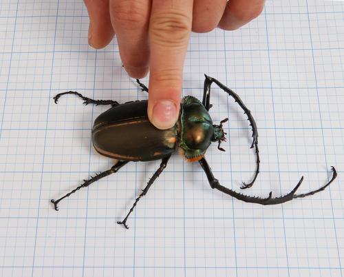经过鉴定,建瓯发现素有“中国甲虫长臂猿”美誉的我国特有物种阳彩臂金龟,而且是国内首次一次发现两只,其中的雄性阳彩臂金龟为国内发现体型最大(体长73mm)。