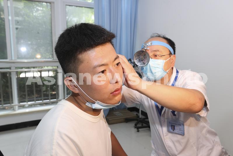图片说明:2022年8月2日,江苏省连云港市赣榆区应征青年在征兵体检站接受身体检查。