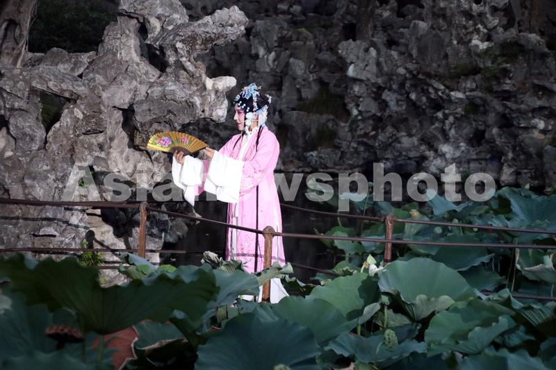 图片说明:2022年8月4日晚,演员在苏州古典园林狮子林为游客表演昆曲《牡丹亭》。