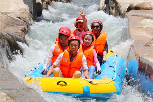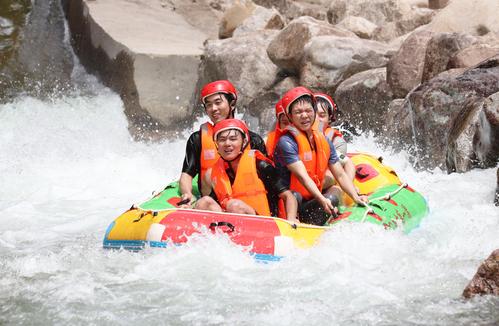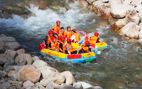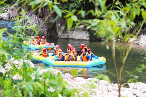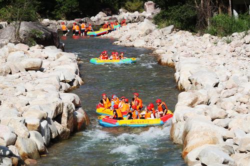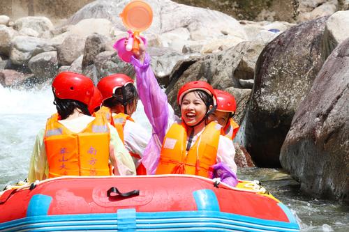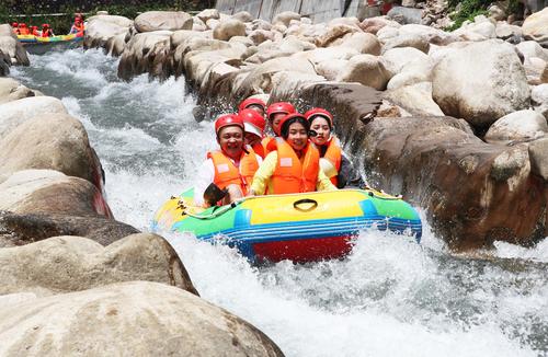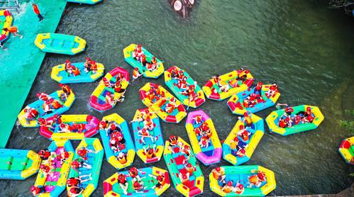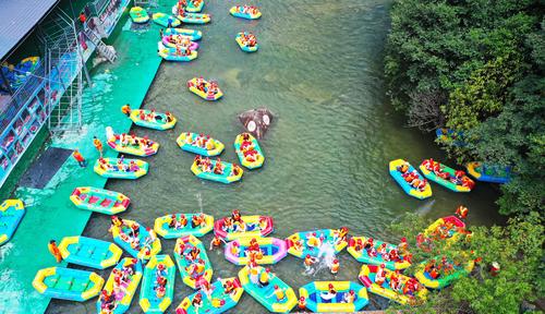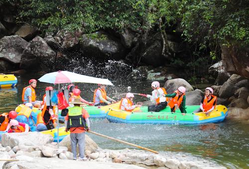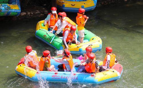 2022年8月6日,湖南省郴州市宜章县莽山国家森林公园景区,游客在莽山大峡谷河流上漂流。暑假期间,生态游、乡村游、亲子游持续升温,不少游客选择到生态优美的景点进行休闲旅游,乐享夏日清凉。近年来,湖南省宜章县坚持生态优先,绿色发展,充分挖掘旅游资源,打造出莽山大峡谷漂流、五指峰景区等文旅新品牌,发展民宿、农家乐等项目,带动当地农民蔬菜、农产品、手工艺品等销售,助力乡村共同富裕,助力乡村振兴。
