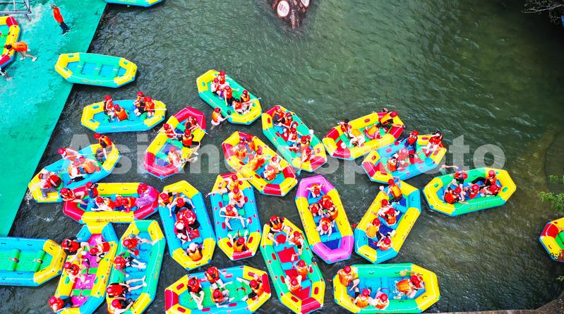 2022年8月6日,湖南省郴州市宜章县莽山国家森林公园景区,游客在莽山大峡谷河流上漂流。暑假期间,生态游、乡村游、亲子游持续升温,不少游客选择到生态优美的景点进行休闲旅游,乐享夏日清凉。近年来,湖南省宜章县坚持生态优先,绿色发展,充分挖掘旅游资源,打造出莽山大峡谷漂流、五指峰景区等文旅新品牌,发展民宿、农家乐等项目,带动当地农民蔬菜、农产品、手工艺品等销售,助力乡村共同富裕,助力乡村振兴。