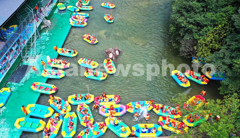 2022年8月6日,湖南省郴州市宜章县莽山国家森林公园景区,游客在莽山大峡谷河流上漂流。暑假期间,生态游、乡村游、亲子游持续升温,不少游客选择到生态优美的景点进行休闲旅游,乐享夏日清凉。近年来,湖南省宜章县坚持生态优先,绿色发展,充分挖掘旅游资源,打造出莽山大峡谷漂流、五指峰景区等文旅新品牌,发展民宿、农家乐等项目,带动当地农民蔬菜、农产品、手工艺品等销售,助力乡村共同富裕,助力乡村振兴。