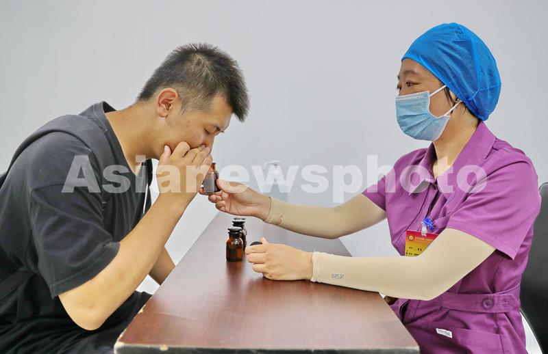 图片说明:2022年8月9日,参加征兵入伍的大学生正在进行体检。