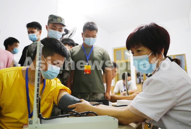 图片说明:2022年8月10日,湖南省永州市新田县人民医院体检中心,参加征兵入伍的适龄青年正在进行体检。