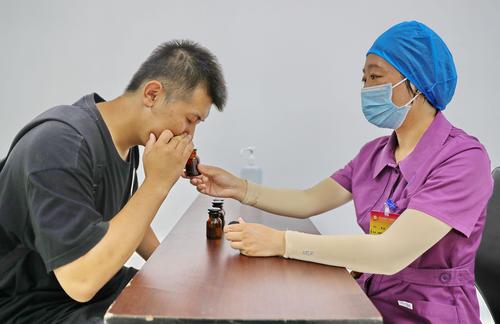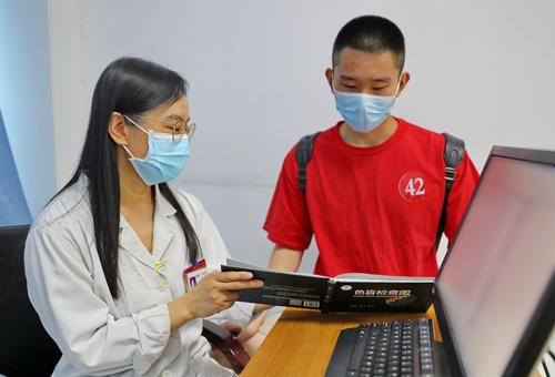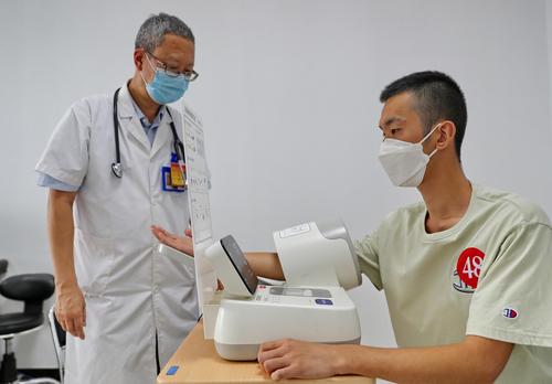 图片说明:2022年8月9日,参加征兵入伍的大学生正在进行体检。