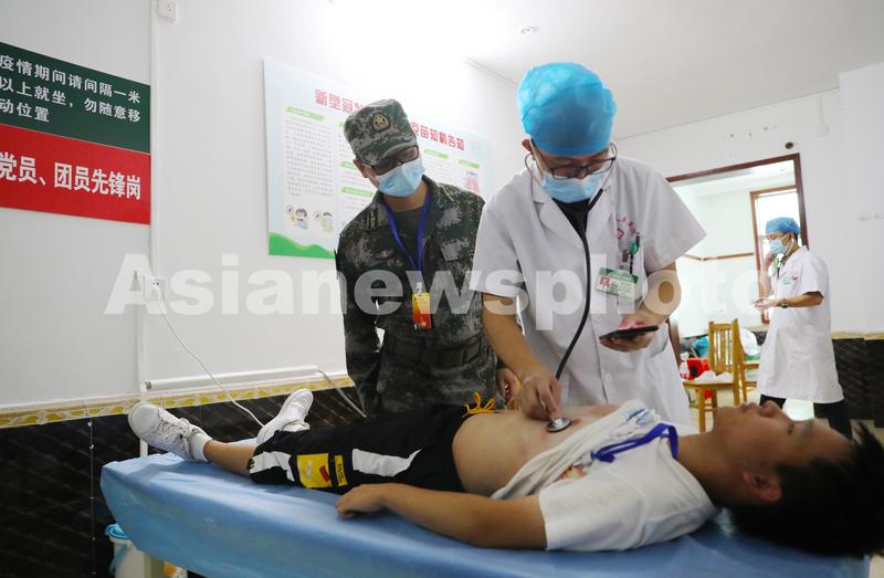 图片说明:2022年8月10日,湖南省永州市新田县人民医院体检中心,参加征兵入伍的适龄青年正在进行体检。