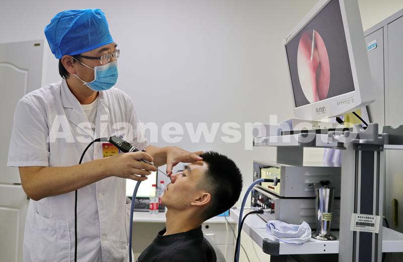 图片说明:2022年8月9日,参加征兵入伍的大学生正在进行体检。
