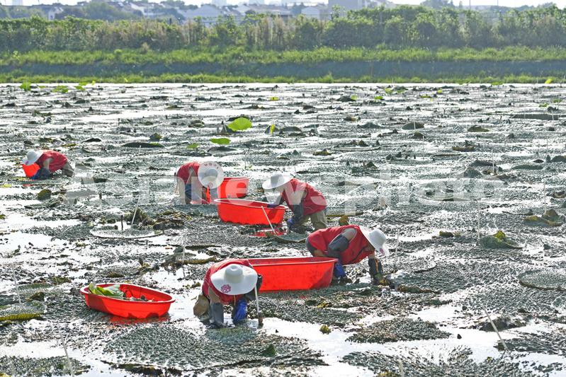 2022年8月12日,常州市天宁区武城村,农户们正在忙着采收芡实。
