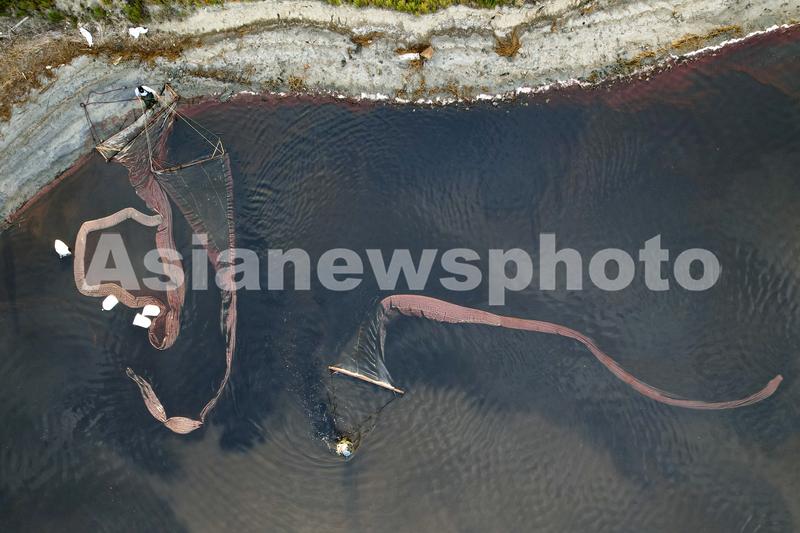 2022年8月15日,山西运城,工人们在盐湖里捞取卤虫。航拍镜头下,他们拖着长15-20米的捞虫网不停地在湖水中游走,宛如水中舞长龙。卤虫也叫丰年虾,俗称盐水虫,是一种生存于陆地盐田和盐湖中的生物,每年入夏后会大量繁殖,是鱼虾的重要饵料,被称水体“软黄金”。