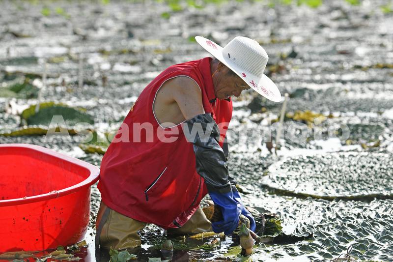2022年8月12日,常州市天宁区武城村,农户们正在忙着采收芡实。今年,武城村鸡头米种植面积达25亩,平均亩产75公斤左右,帮助当地农户创造良好的收益。