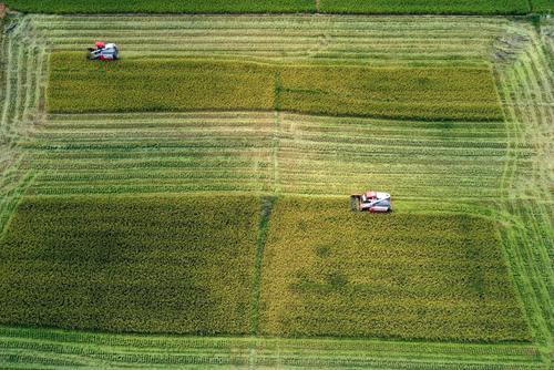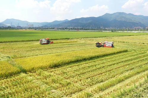 连日来,福建省福州市长乐区的水稻进入成熟期。为确保稻谷颗粒归仓,当地百姓抢抓晴好天气收割、晾晒,田间地头一派丰收景象。