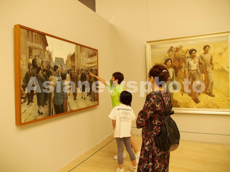 2022年8月17日,观众在中国美术馆参观“美术作品中的青春——中国美术馆藏经典作品展”。