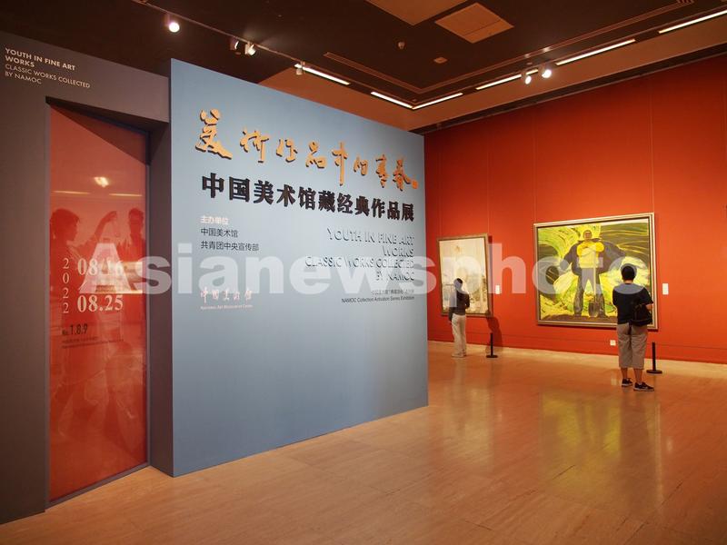 2022年8月17日,观众在中国美术馆参观“美术作品中的青春——中国美术馆藏经典作品展”。