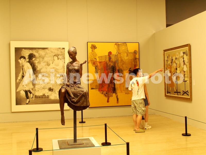 2022年8月17日,观众在中国美术馆参观“美术作品中的青春——中国美术馆藏经典作品展”。