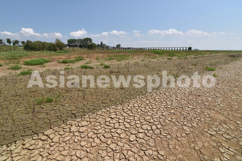 图片说明:2022年8月21日,江苏南京石臼湖露出大片滩涂。