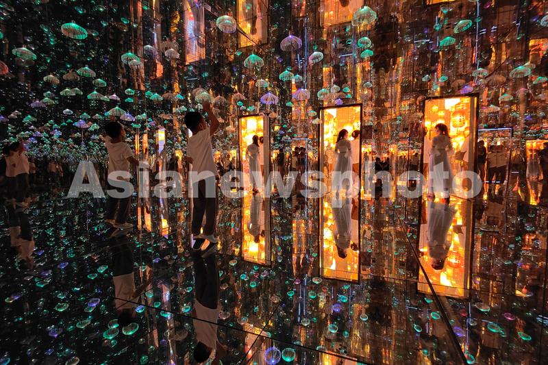 图片说明:2022年8月22日,上海,当日中午,观众在一商场5楼的“悬空玻璃艺术馆”内参观和拍照打卡。