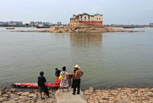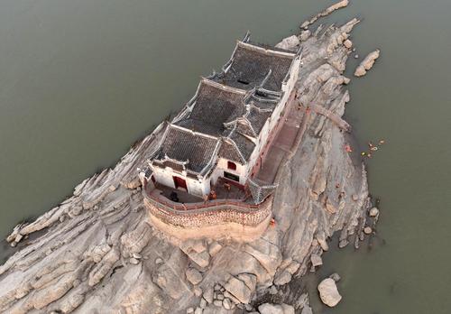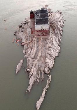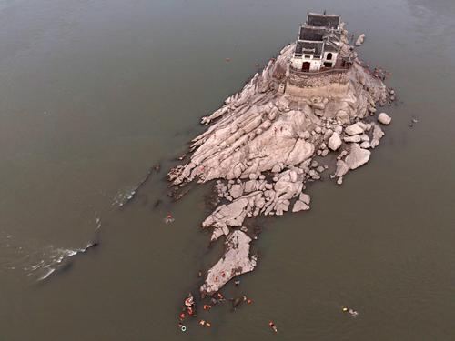 长江汛期反枯:鄂州观音阁基石外露 查看组图