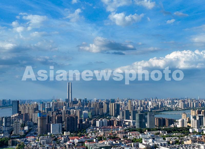 图片说明:2022年8月21日,蓝天白云与武汉城市建筑交相辉映,构成一幅美丽的城市风景画。