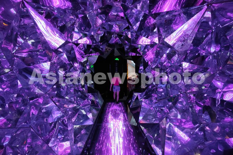 图片说明:2022年8月22日,上海,当日中午,观众在一商场5楼的“悬空玻璃艺术馆”内参观和拍照打卡。
