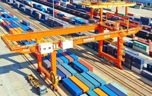 江西南康:中欧班列货柜装卸忙 查看组图