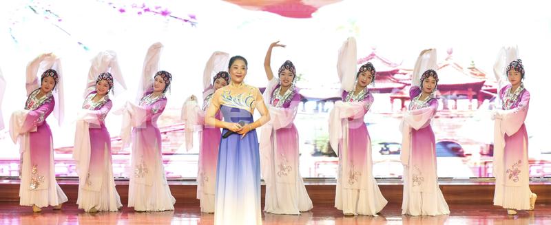 2022年8月25日,江苏淮安,黄梅戏演员表演节目。