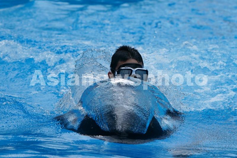图片说明:特警队员正在进行水上装备使用展示。