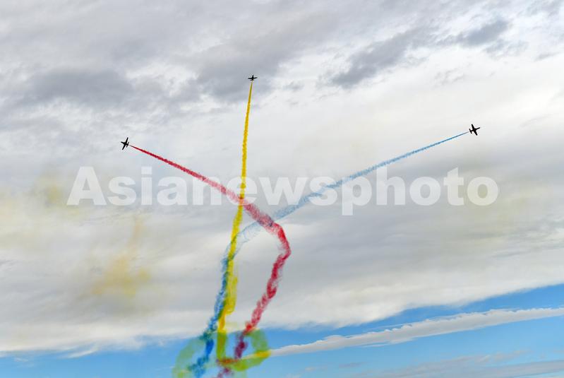 2022年8月26日,在2022年空军航空开放活动暨长春航空展上,飞机表演队在为观众进行飞行表演。