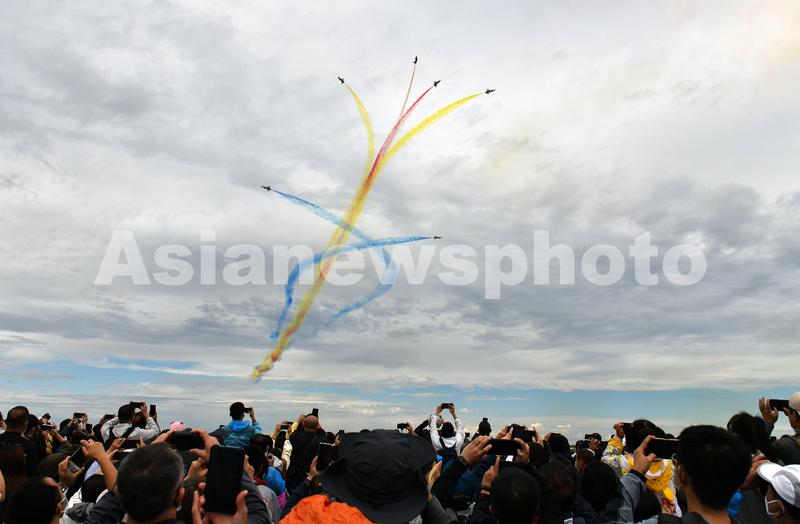 2022年8月26日,在2022年空军航空开放活动暨长春航空展上,人们在观看飞行表演。
