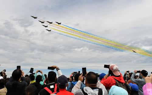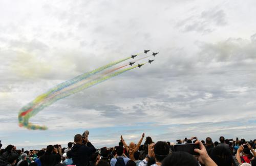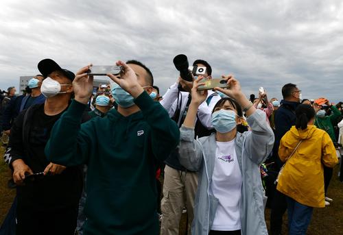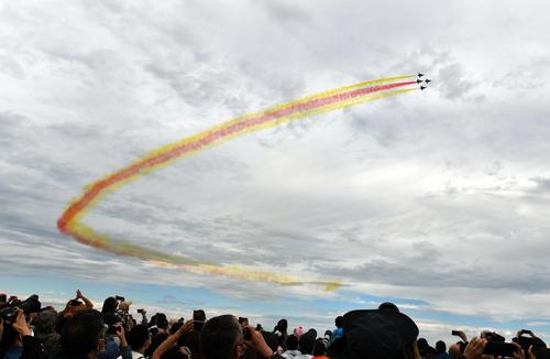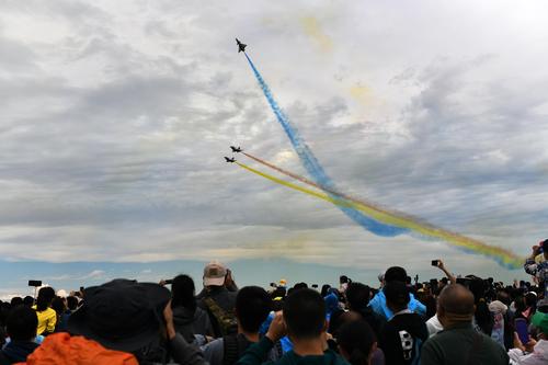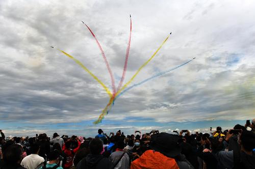 2022年8月26日,在2022年空军航空开放活动暨长春航空展上,人们在观看飞行表演。