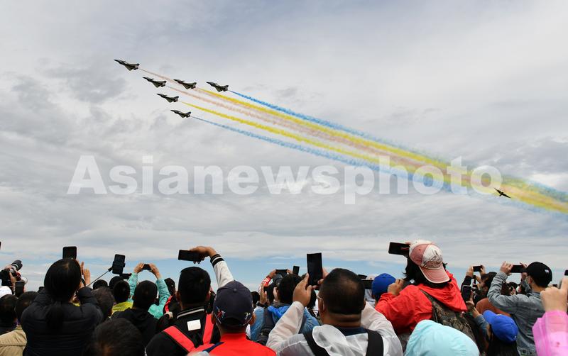2022年8月26日,在2022年空军航空开放活动暨长春航空展上,人们在观看飞行表演。