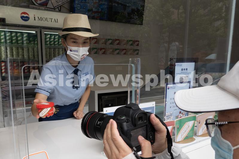 2022年8月30日,上海,当天中午,茅台冰淇淋位于思南公馆的旗舰店前顾客络绎不绝,不少“抓到”茅台冰淇淋娃娃的顾客在店前留影,现场气氛欢乐。