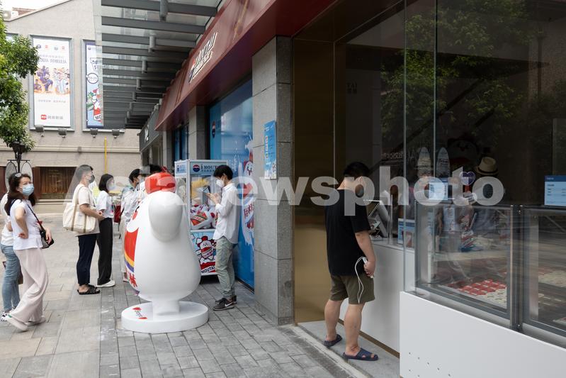 2022年8月30日,上海,当天中午,茅台冰淇淋位于思南公馆的旗舰店前顾客络绎不绝,不少“抓到”茅台冰淇淋娃娃的顾客在店前留影,现场气氛欢乐。