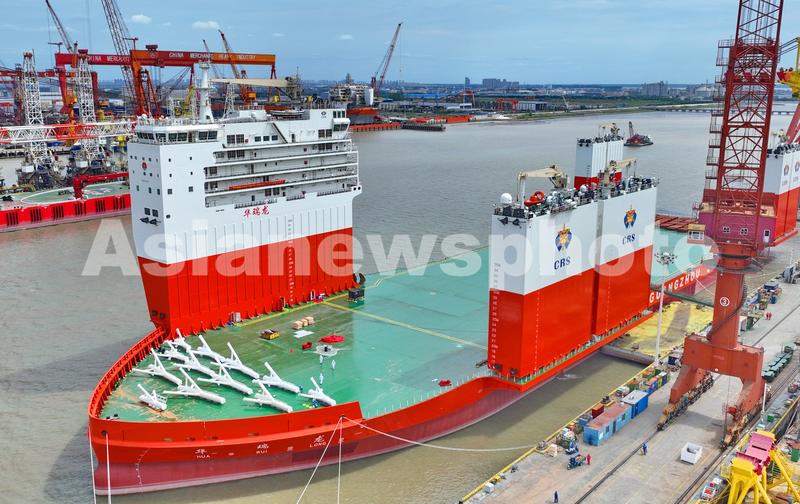 2022年8月28日在招商工业江苏海门基地拍摄的新型半潜打捞工程船“华瑞龙”。