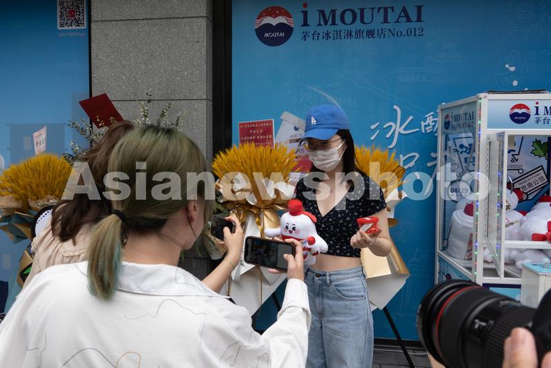 2022年8月30日,上海,当天中午,茅台冰淇淋位于思南公馆的旗舰店前顾客络绎不绝,不少“抓到”茅台冰淇淋娃娃的顾客在店前留影,现场气氛欢乐。
