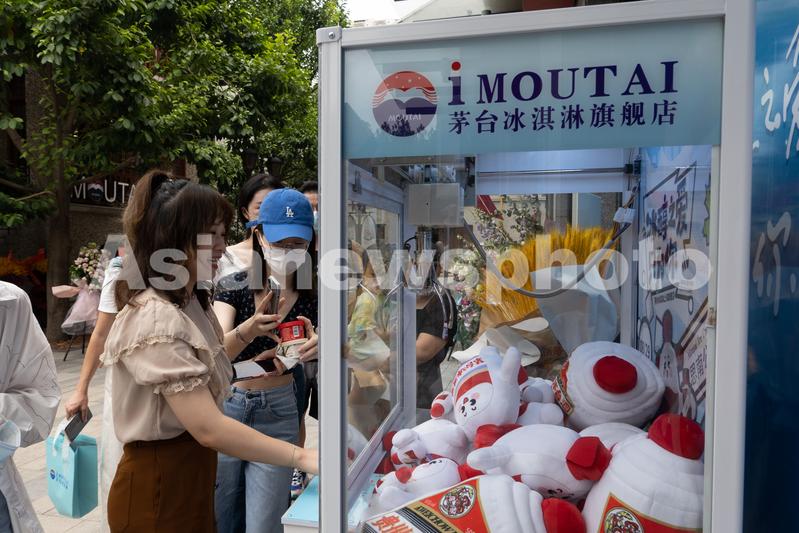 2022年8月30日,上海,当天中午,茅台冰淇淋位于思南公馆的旗舰店前顾客络绎不绝,购买冰淇淋的顾客同时获赠三个游戏币,可在一旁抓娃娃机内抓取品牌公仔,其中茅台冰淇淋的IP公仔抓取成功率相当高,边吃边玩的模式带来愉悦的气氛让现场人气得到持续。