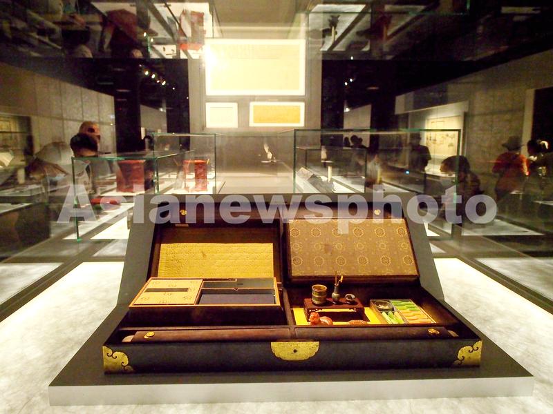 图片说明:2022年8月30日,故宫“照见天地心——中国书房的意与象”展览上展出的“紫檀木旅行文具箱(清)”。