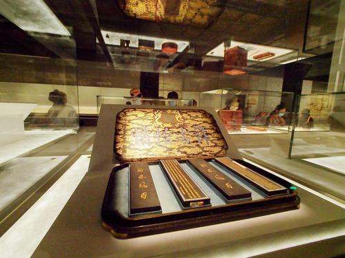 图片说明:2022年8月30日,观众在故宫午门展厅参观“照见天地心——中国书房的意与象”展览。
