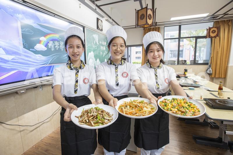图片说明:2022年8月31日,江苏省镇江市第三中学八年级学生在开学第一课展示自己的厨艺。