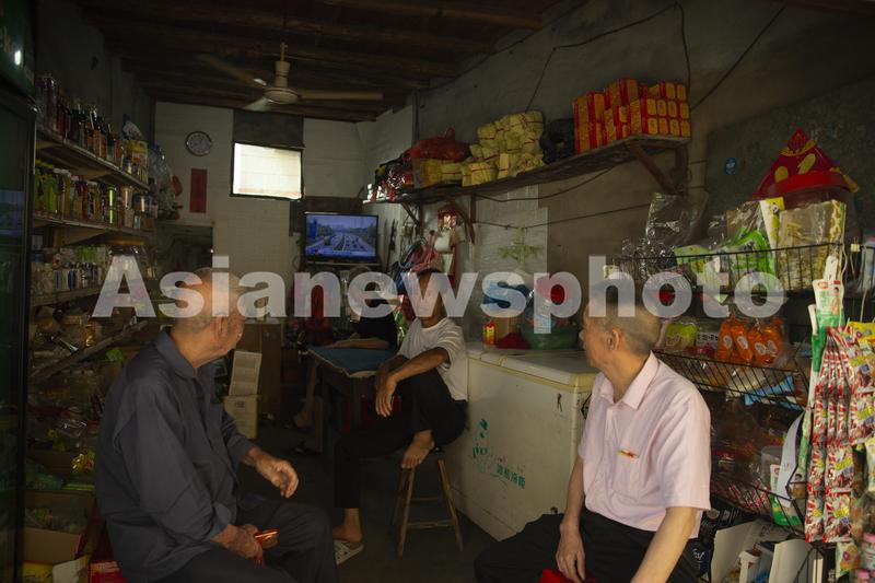 图片说明:6月29日,福建福安,下岐村几名老人在商铺看电视